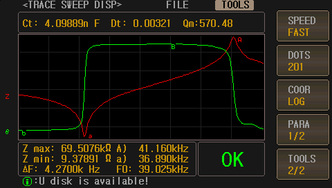 諧振頻率Fs | 反諧振頻率Fp | 靜態(tài)電容C0 | 動態(tài)阻抗R1 |