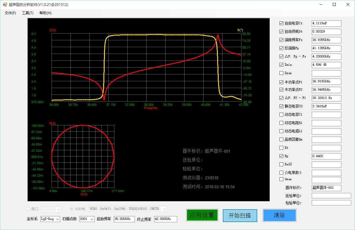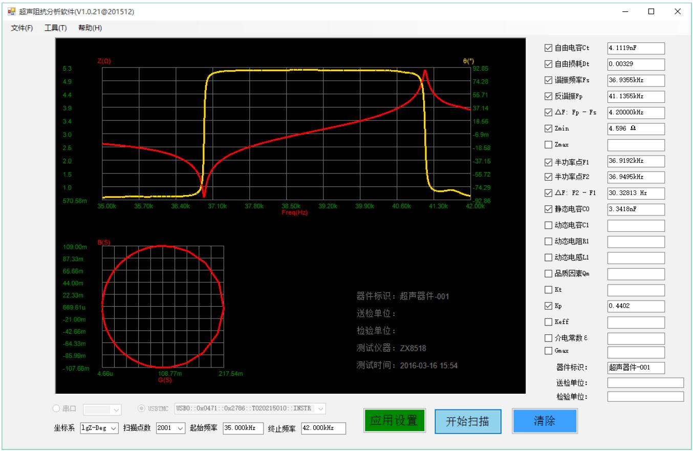 ZX70A/ZX80A系列超聲阻抗分析儀在儀器上就實現(xiàn)掃描圖形,還可以把儀器上屏幕顯示圖形和測試數(shù)據(jù)直接拷貝到U盤。同時儀器自帶電腦軟件界面,標(biāo)配版無需另行購買。